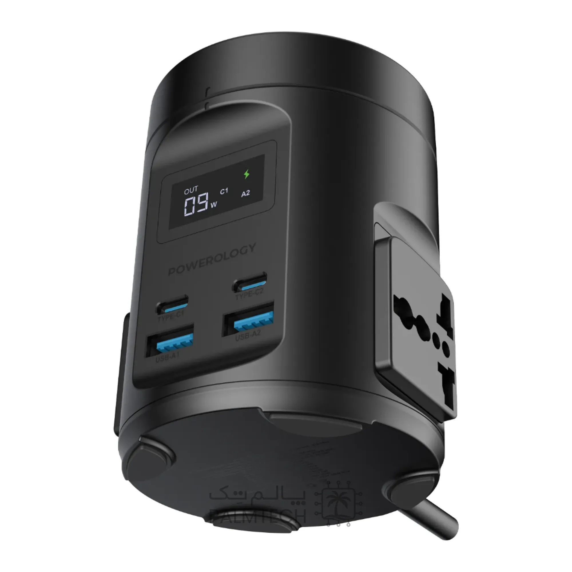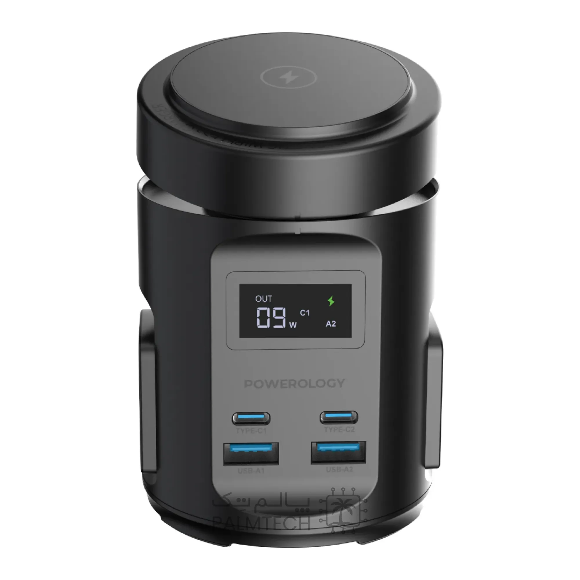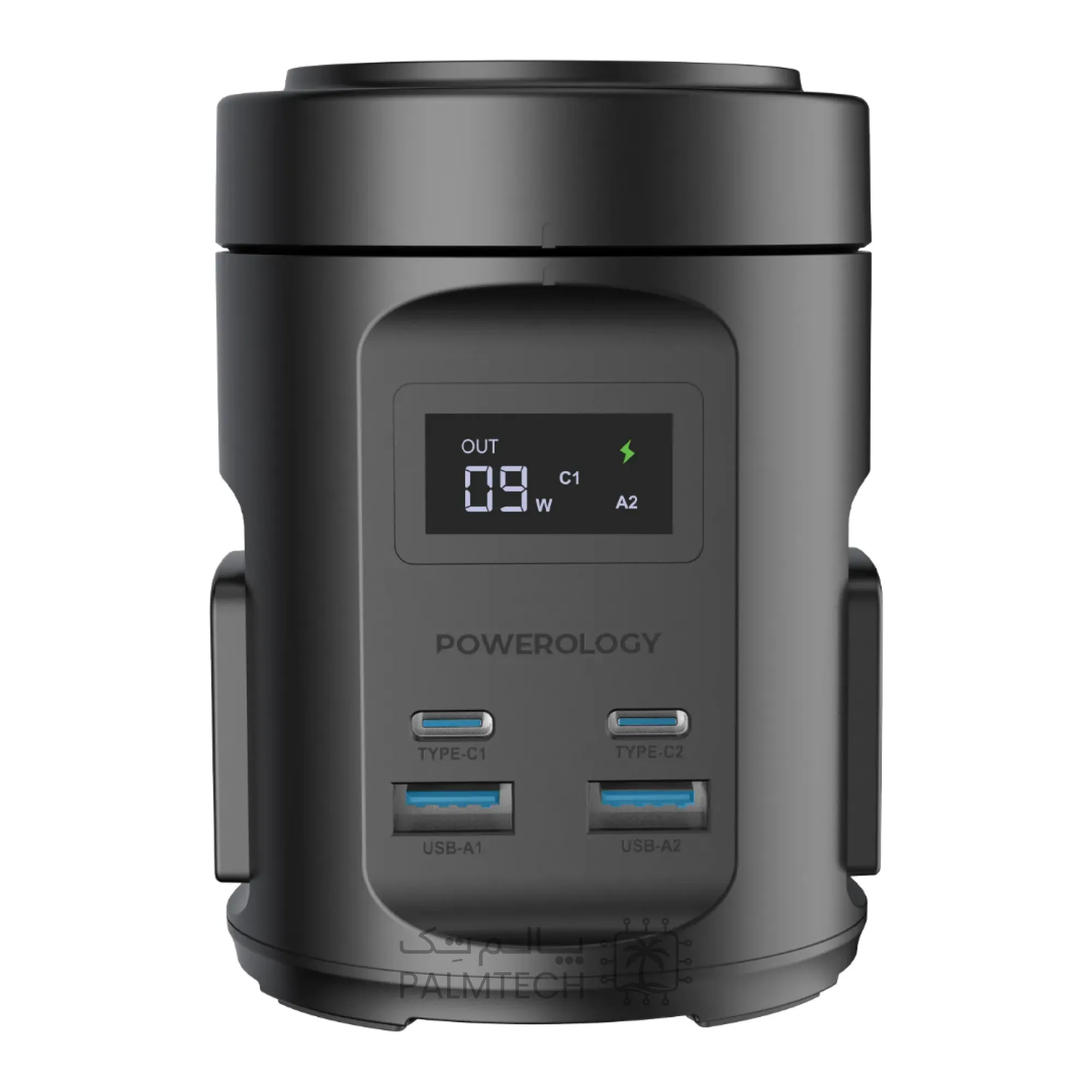 سیار Powerology PWCUQC014 یک ایستگاه شارژ چندمنظوره و جمعوجور است که ترکیبی از پریز برق و پورتهای شارژ مدرن را ارائه میدهد. دارای دو پورت USB‑C 65 وات PD، دو پورت USB‑A QC 3.0 و شارژر وایرلس MagSafe 15 وات برای شارژ همزمان گوشی، تبلت و لپتاپ است.