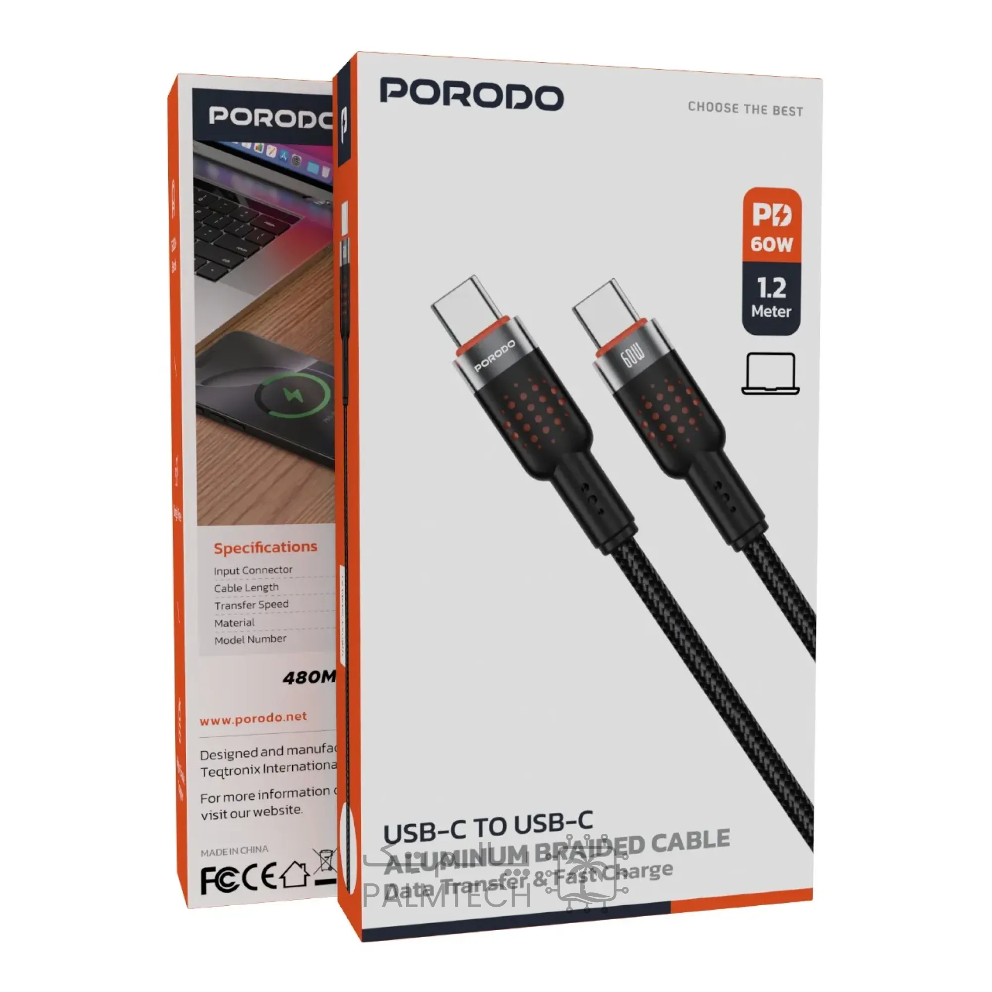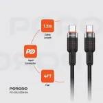 کابل 1.2 متری آلومینیومی پرودو مدلPDCBL0009BK Porodo USB-C to USB-C Aluminum Braided Cable