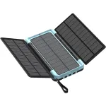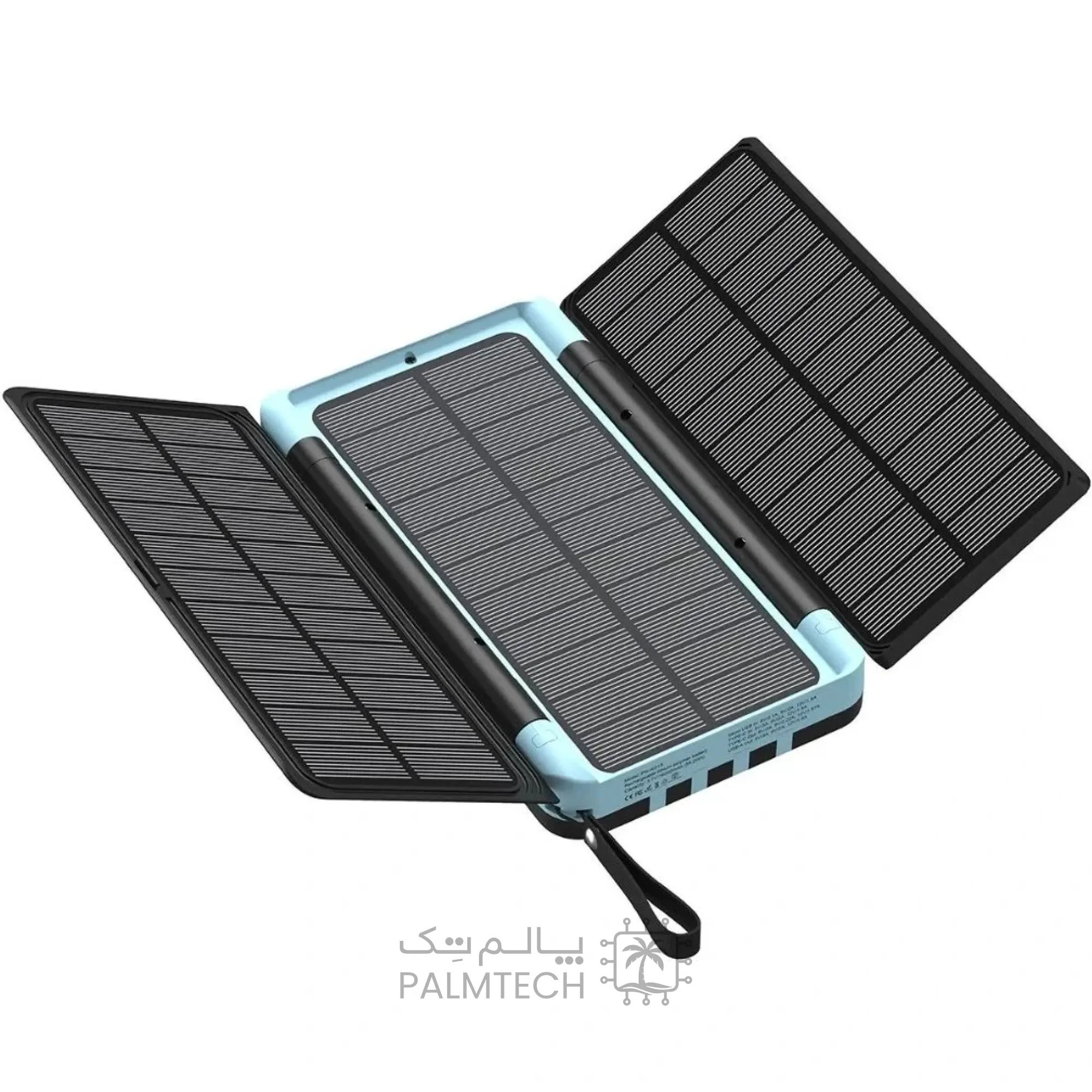 پاوربانک خورشیدی پاورولوژی مدل PPBCHA70-BK POWEROLOGY 16000MAH POWER BANK WITH 4 BUILT-IN CABLES 3 FOLDABLE SOLAR PANELS WITH