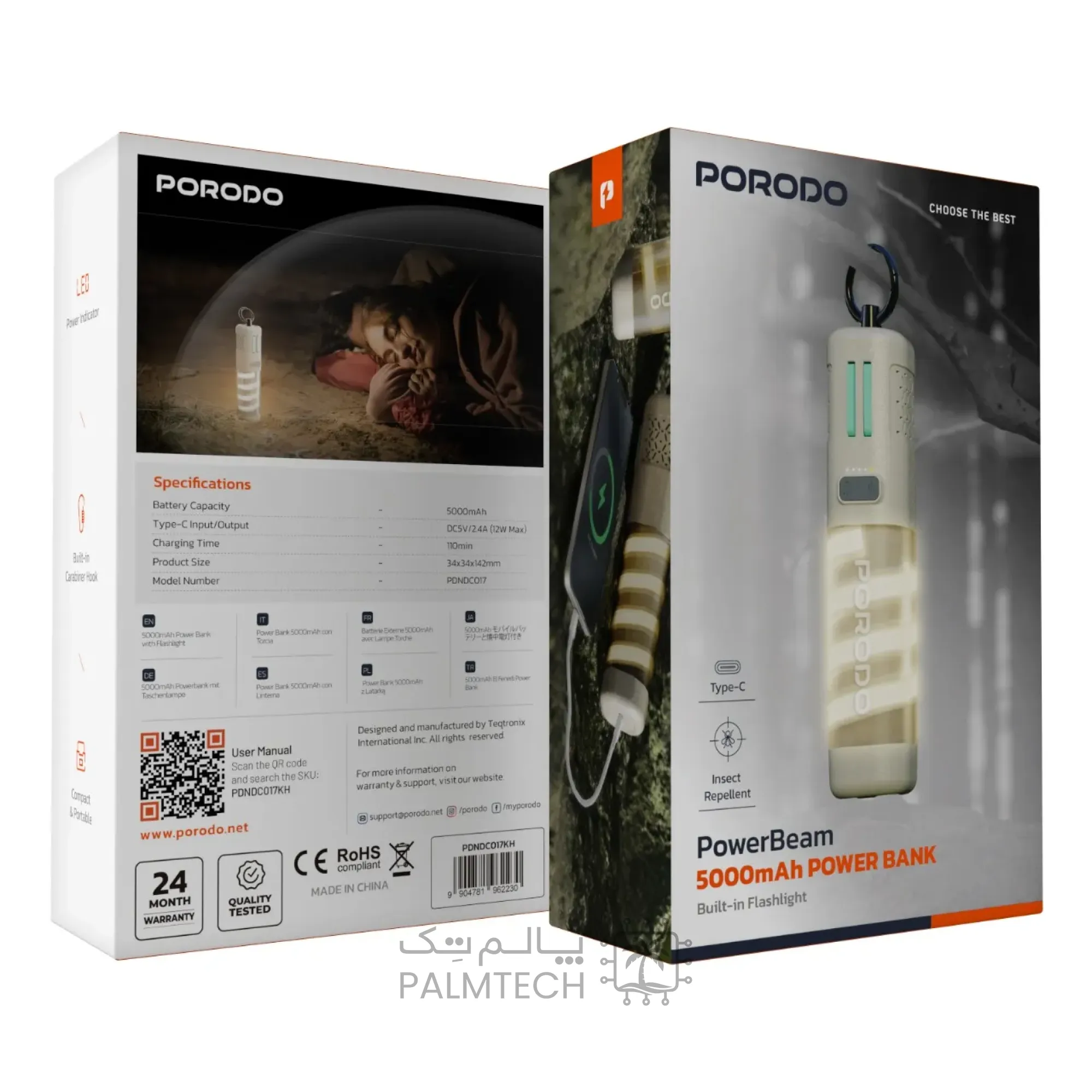 پاوربانک Porodo Powerbeam با ظرفیت 5000 میلیآمپر، یک شارژر همراه کوچک و بسیار کاربردی است که با داشتن چراغقوه، قلاب کارابین برای حمل آسان، نشانگر توان و حتی قابلیت دفع حشرات، یک گزینه ایدهآل برای سفر، طبیعتگردی و استفاده روزمره محسوب میشود.